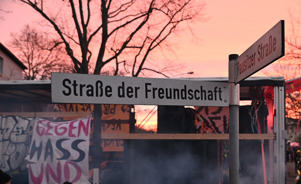 Riesa 2025: Der nächste Parteitag der AfD, fand wegen der vorgezogenen Bundestagswahlen, am 14. und 15.1.25 in der sächsischen Kleinstadt Riesa statt. Mit nur kurzer Mobilisierungszeit und höhen Hürden, aufgrund der enormen Kälte und des abgelegenen Ortes, waren die Vorzeichen für die zweite Runde widersetzen eher negativ. Trotz dieser Herausforderungen schafften wir es als widersetzen gemeinsam über 200 Busse und ca. 15.000 Menschen im tiefsten Winter zum Protest nach Riesa zu bringen. Der Parteitag wurde durch zahlreiche, kreative Aktionen des Zivilen Ungehorsams von ca. 12.000 Widersetzer*innen über 2 Stunden verzögert. Es folgte eine breite mediale Berichterstattung, die den starken Protest, aber auch massive Polizeigewalt thematisierte.
